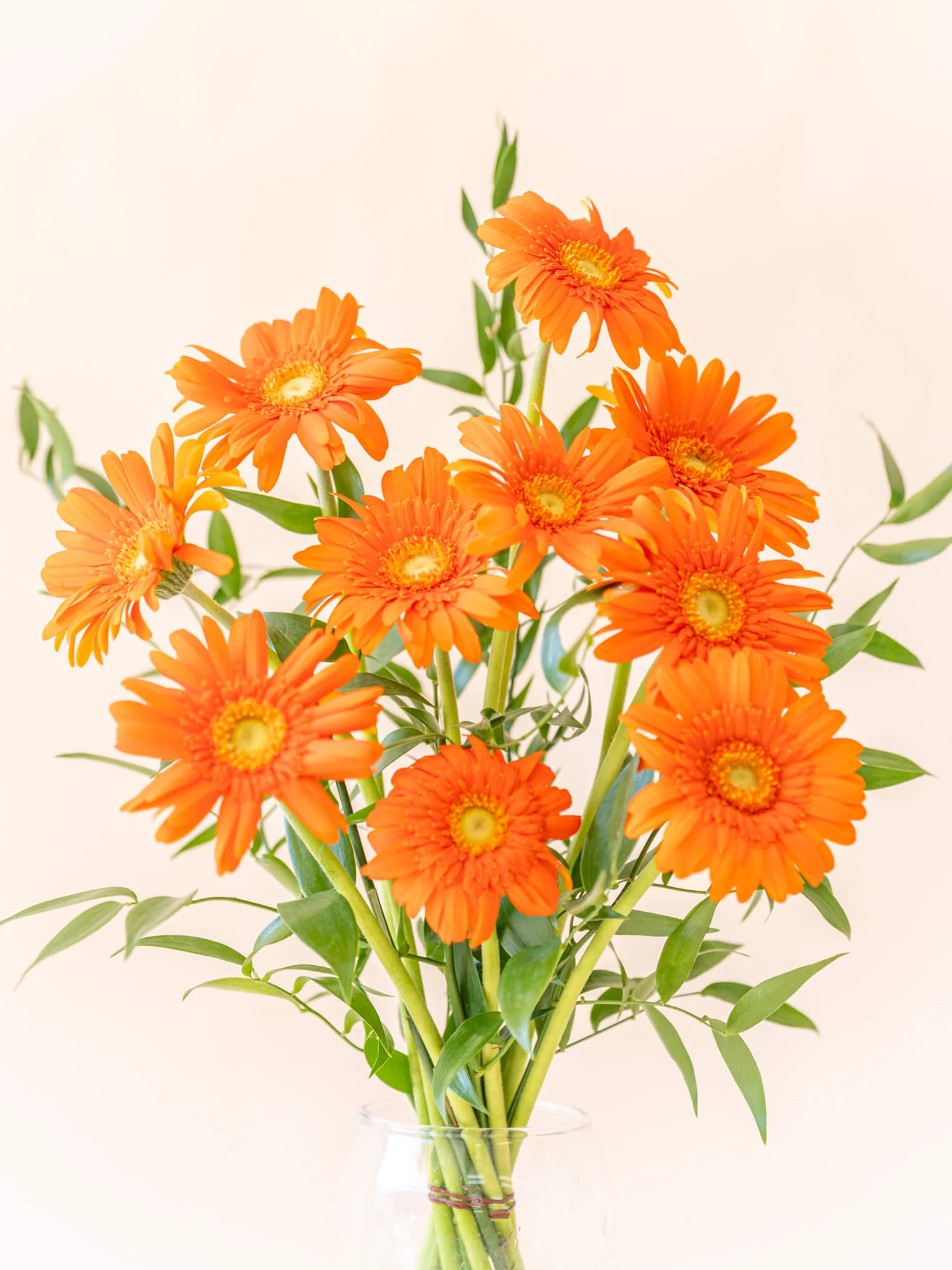 アンドプランツのフローリストが提案する、ガーベラとグリーンのみで合わせた花束です。