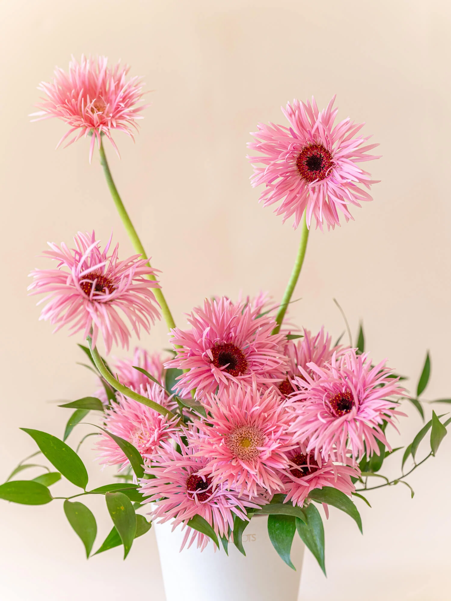 アンドプランツのフローリストが提案する、ガーベラとグリーンのみで合わせたアレンジメントです。