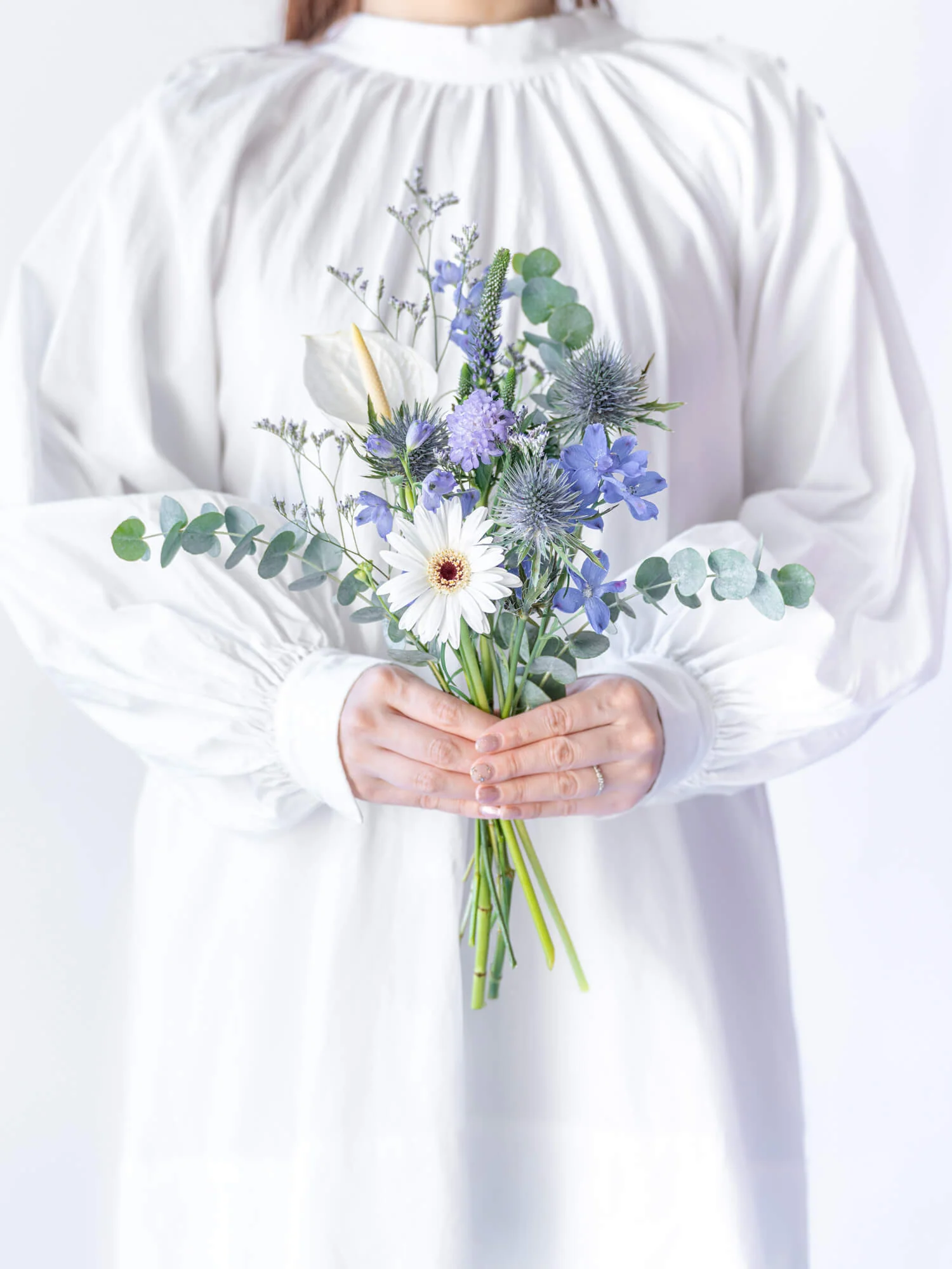 季節に合わせた旬のお花をメイン花材とし、珍しい花材やフレッシュな葉物を組み合わせて、同じもののない特別な花束をご提案します。