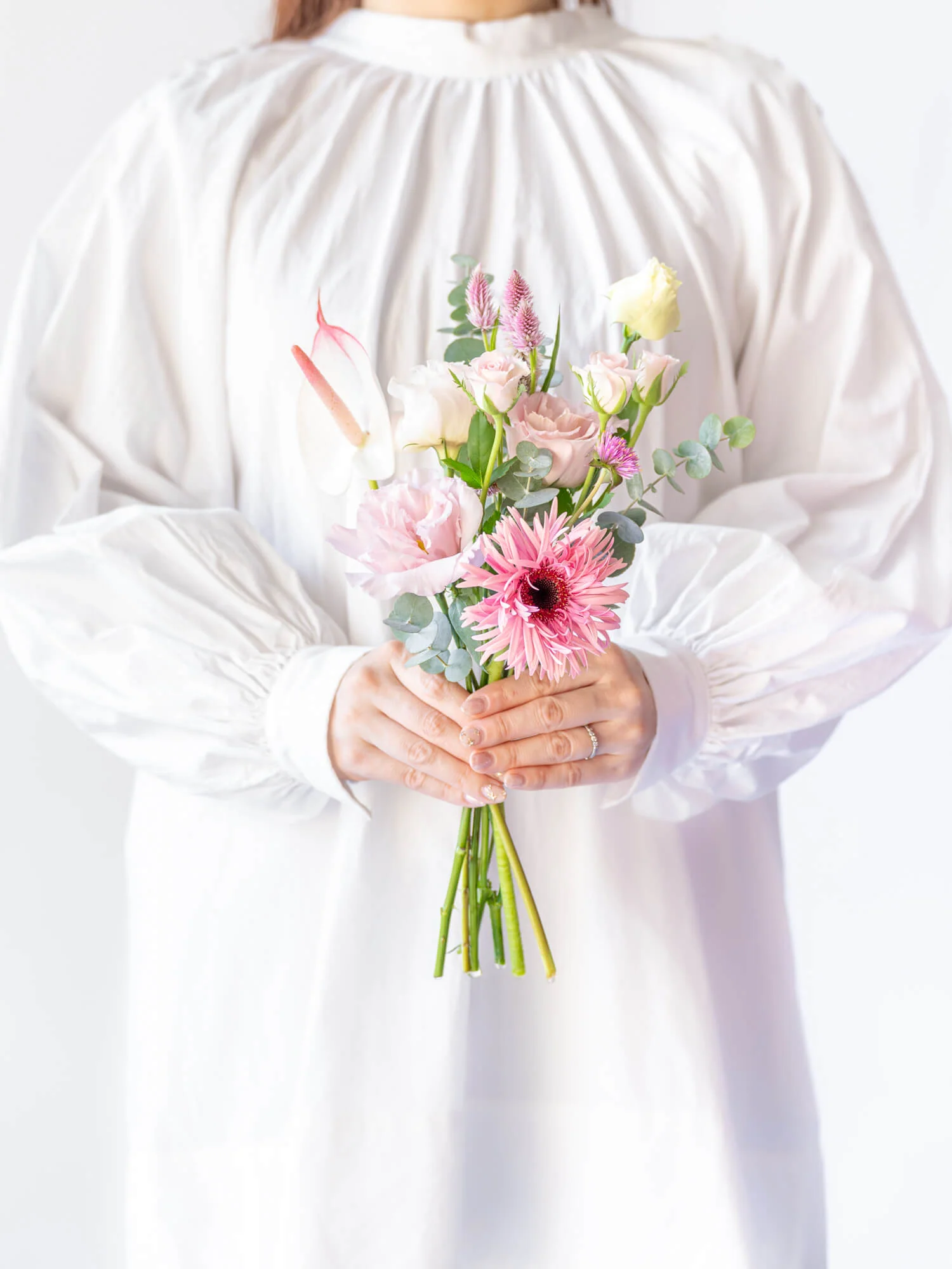 季節に合わせた旬のお花をメイン花材とし、珍しい花材やフレッシュな葉物を組み合わせて、同じもののない特別な花束をご提案します。