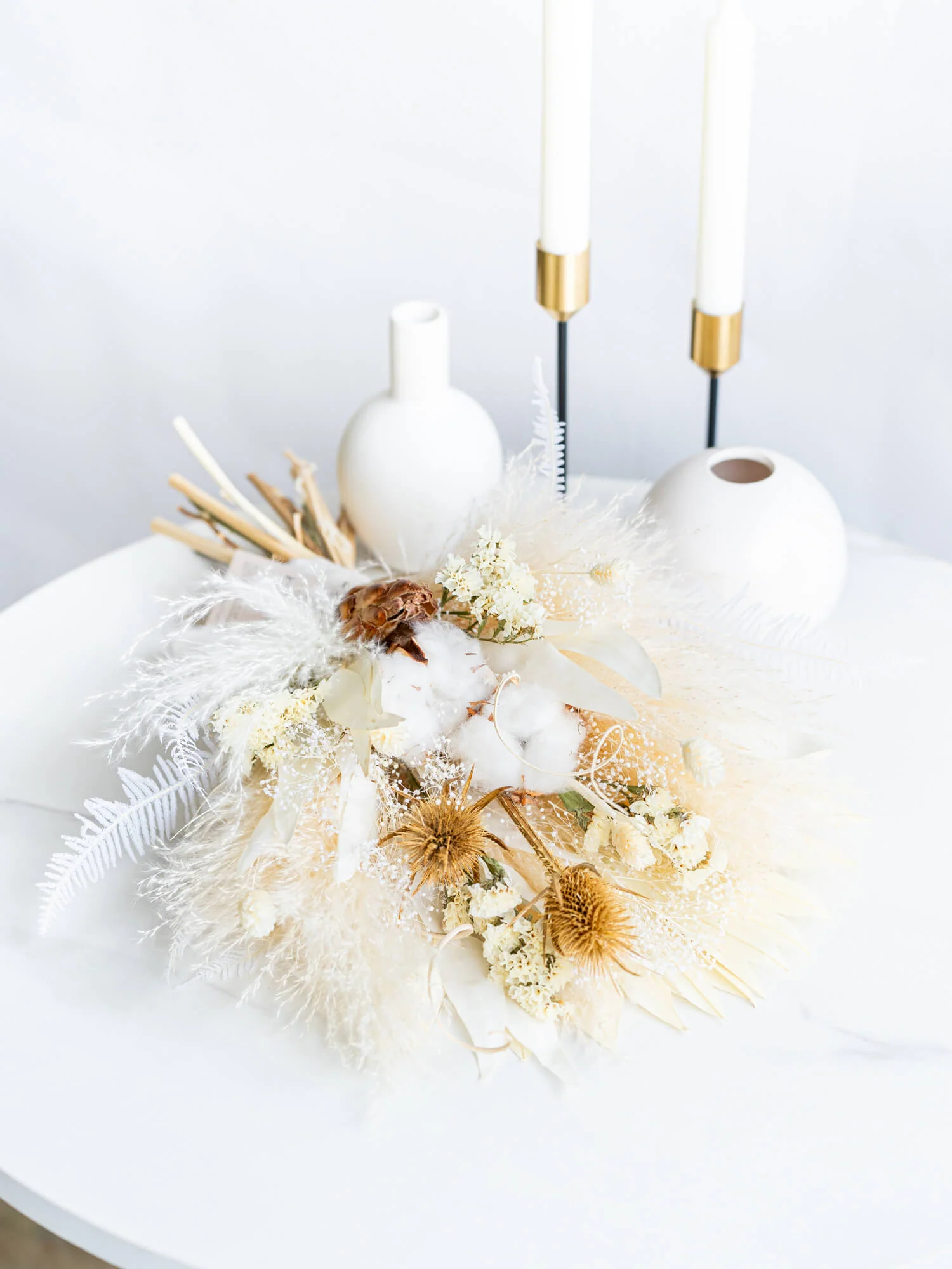【壁に掛ける】ドライフラワーのスワッグ - ベージュ -—