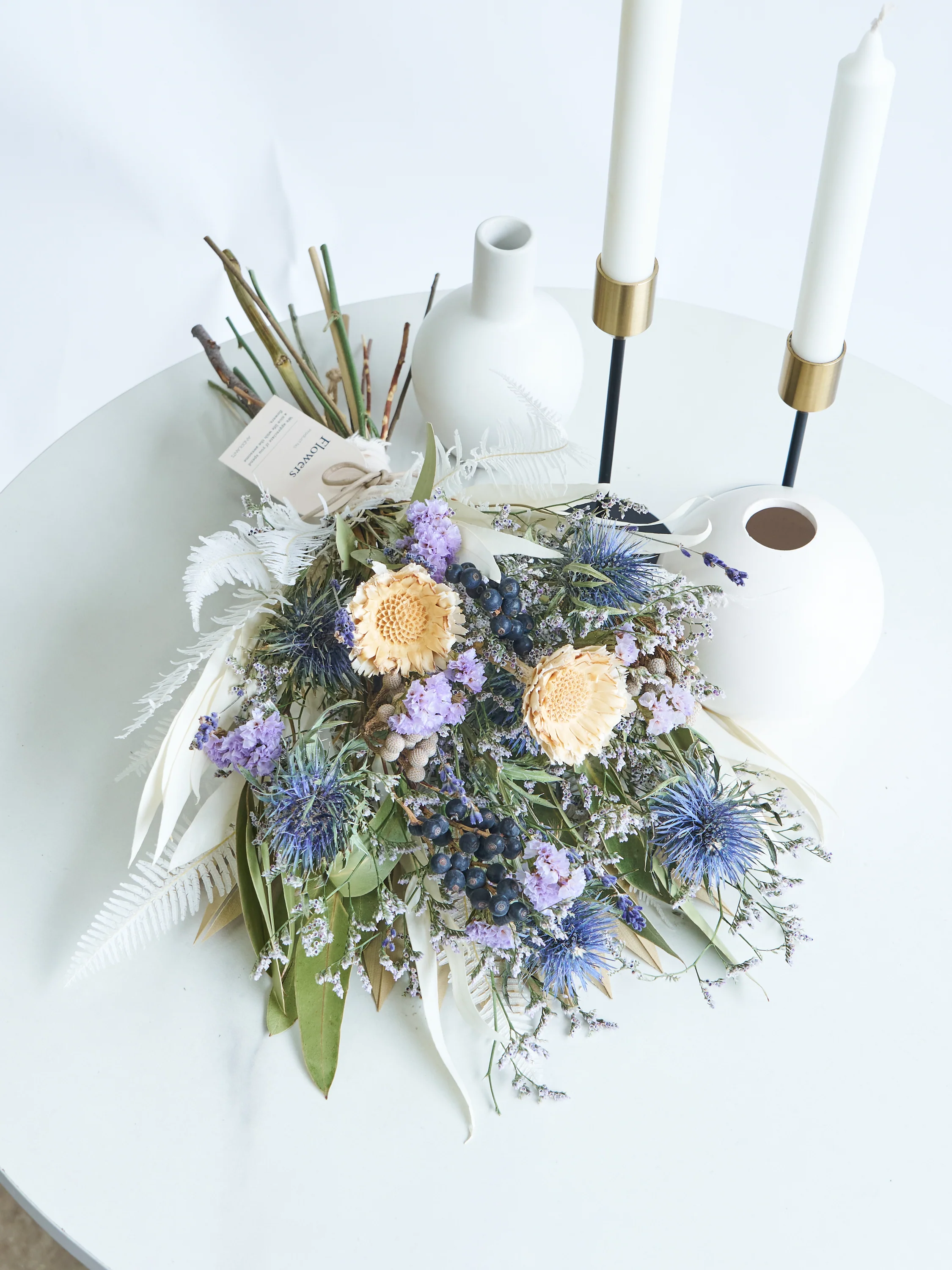 【壁に掛ける】ドライフラワーのスワッグ - ブルー -—