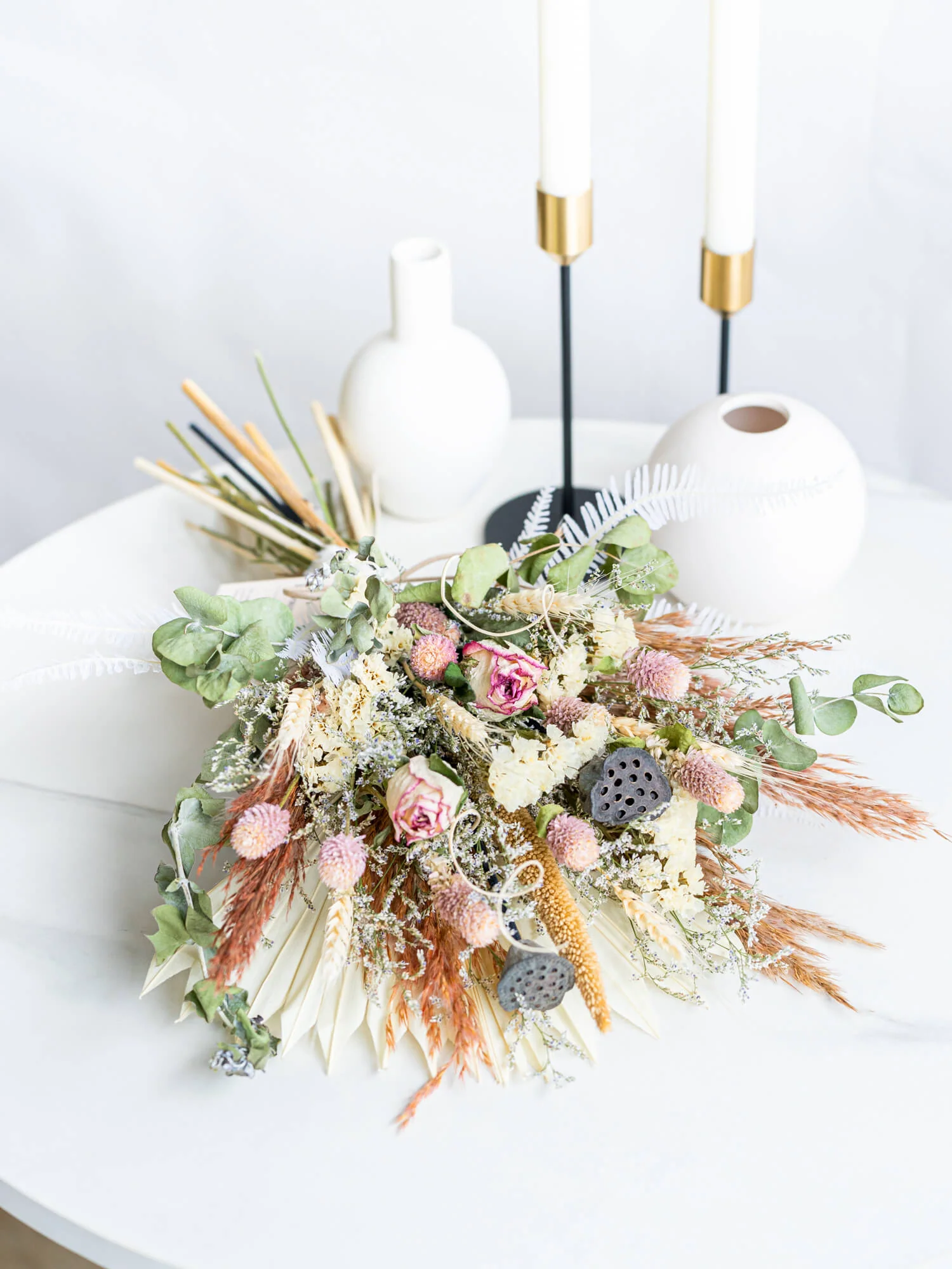 【壁に掛ける】ドライフラワーのスワッグ - ピンク -—