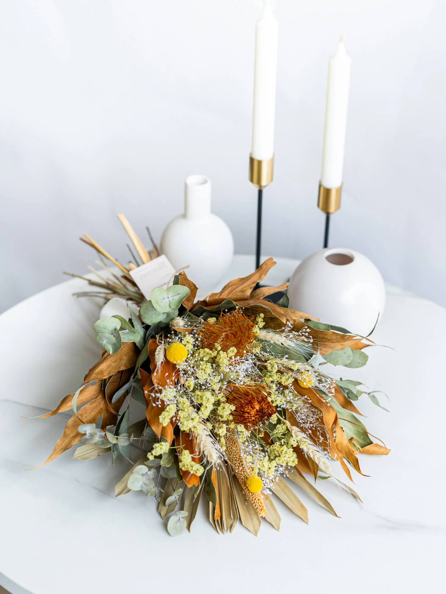 【壁に掛ける】ドライフラワーのスワッグ - イエロー -—