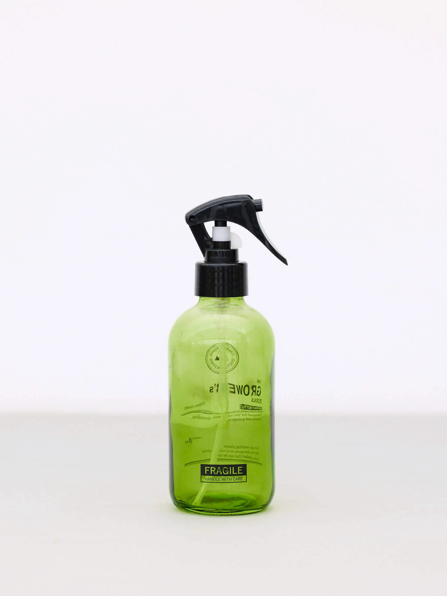 グロワーズツールズのスプレーボトル。ちょうどよく広範囲に吹きかけることができるので、植物の水やりはもちろん、掃除やアイロン掛けなど、さまざまな用途でお使いいただけます。