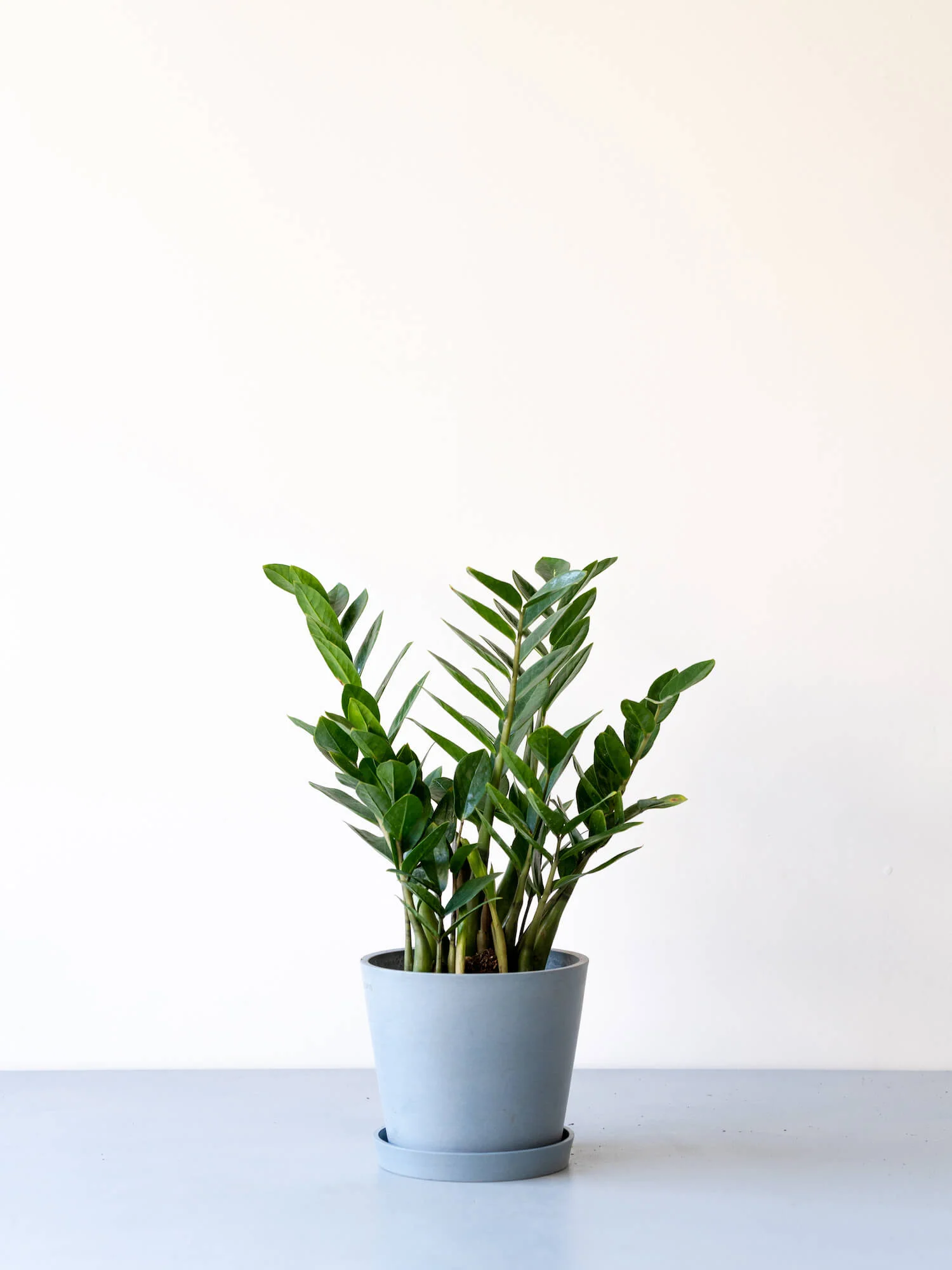 艶やかな濃緑の葉と、すっきりとした立ち姿が魅力のザミオクルカス。葉は多肉質でぷっくりと厚みがあり、乾燥に強く丈夫なため、初心者にもおすすめの一鉢です。